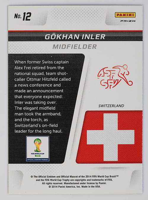 12 PRIZM Cup Captains Gokhan INLER colour 2014 WORLD CUP BRASIL