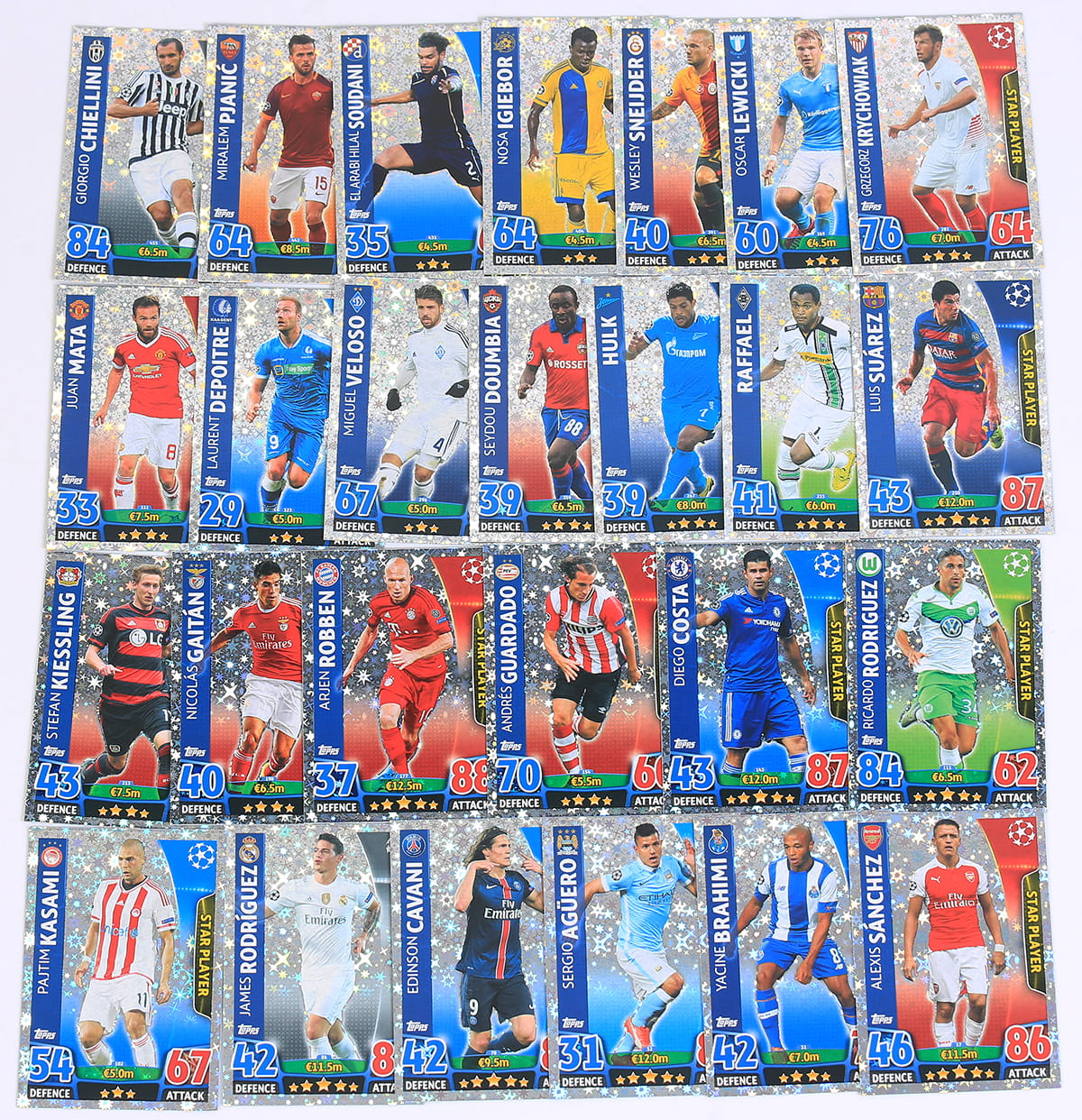 26 cards STAR PLAYER full set - TOPPS - CHAMPIONS LEAGUE 2015 - 2016 international
