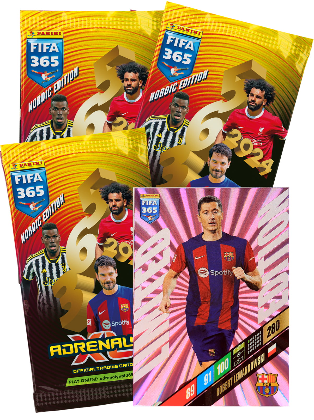 3 x NORDIC booster pack + 1 Limited Lewandowski Barcelona 2024 FIFA 365