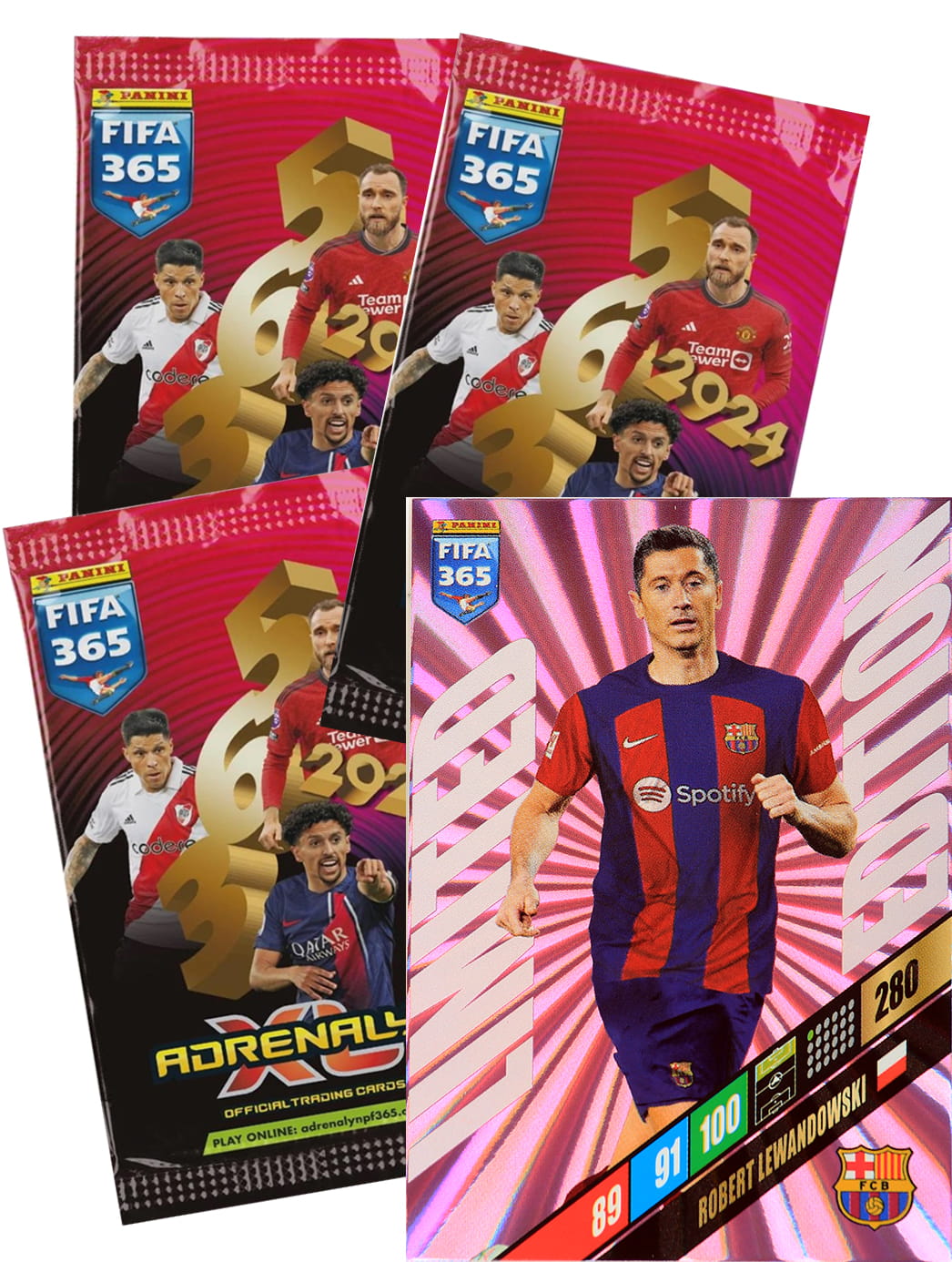 3 x booster pack + 1 Limited Lewandowski Barcelona 2024 FIFA 365