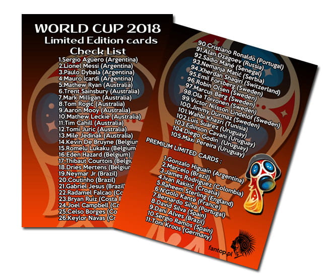 Limited Edition cards CHECK LIST - World Cup 2018
